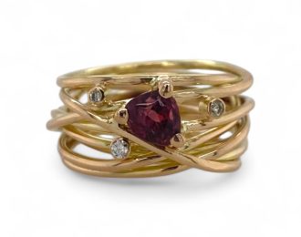 Bicolor gouden ring met diamant, handgemaakt – occasion #28997