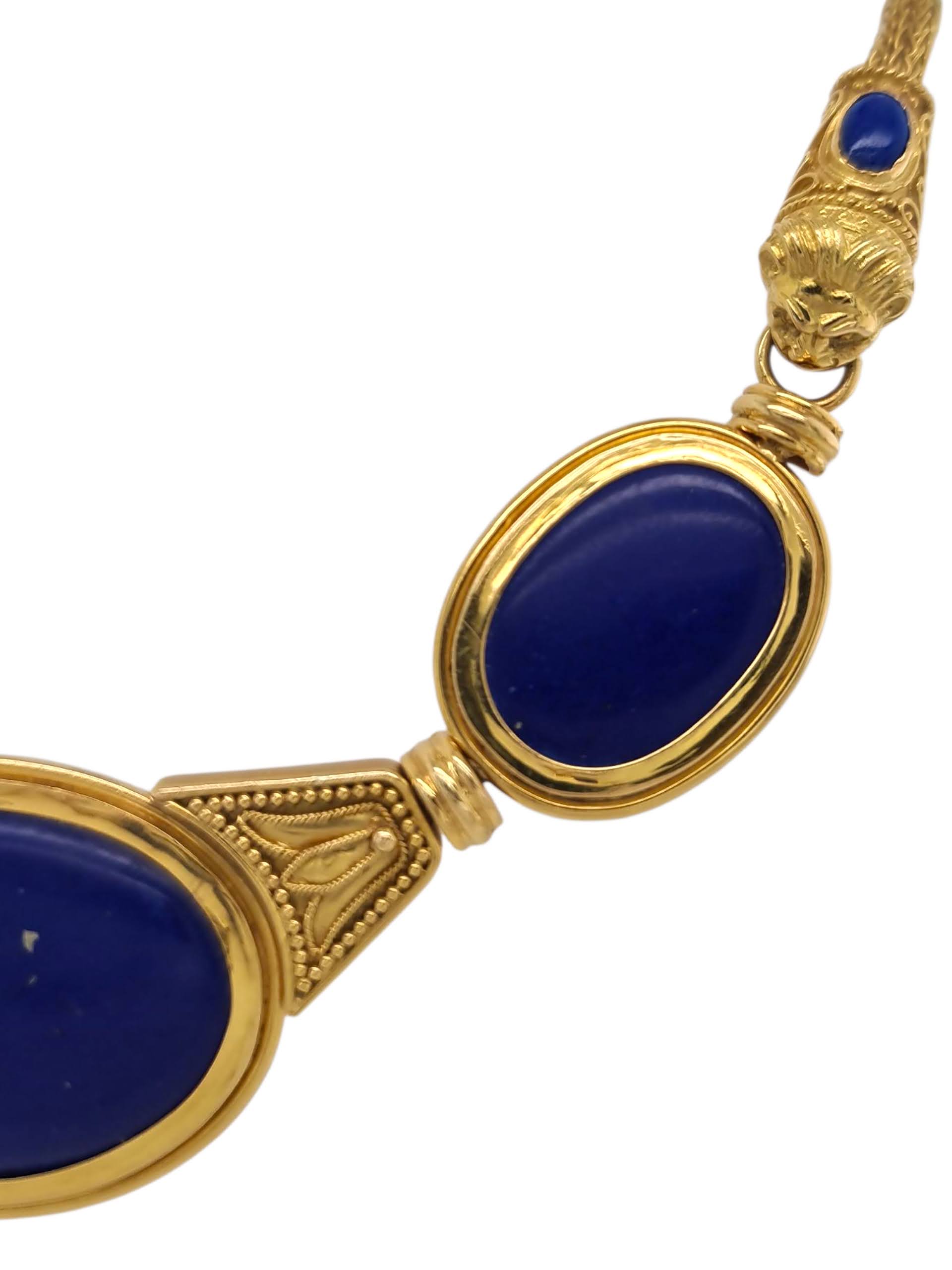18 karaats gouden halsketting met Lapis Lazuli en leeuwdetails – Vintage #28594