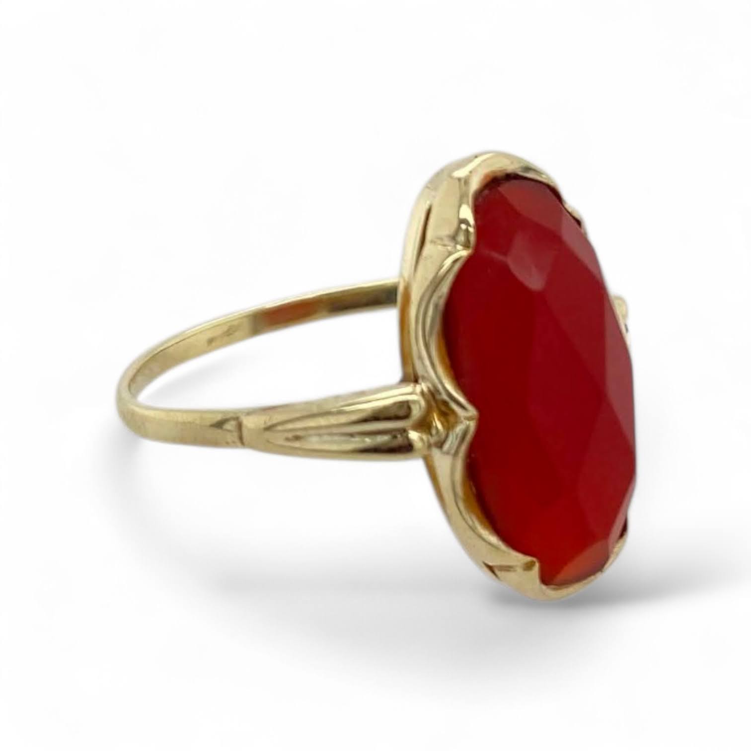 Vintage 14 karaat geelgouden ring met Carneool – occasion #29247