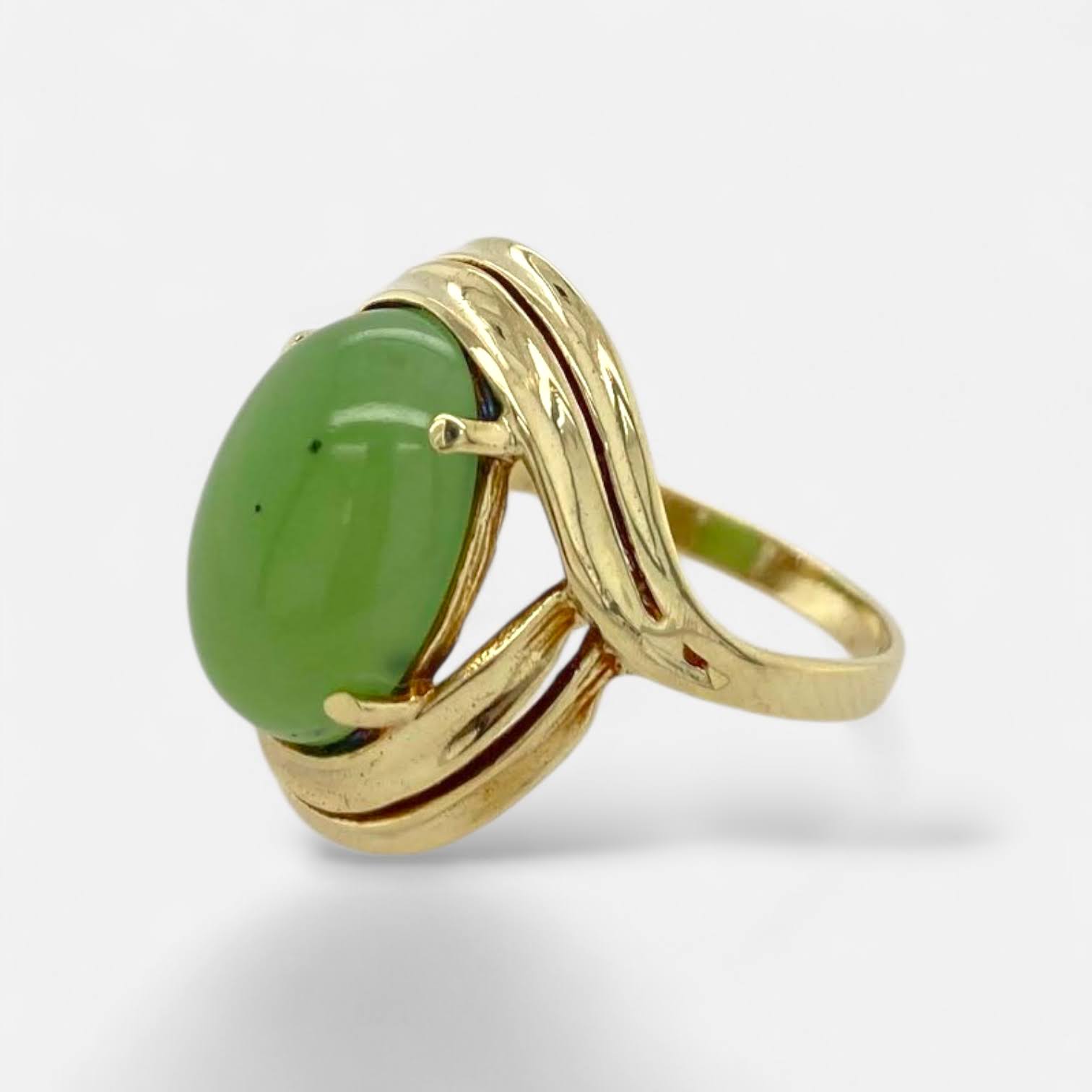 Vintage 14 karaat geelgouden ring met nefriet – occasion #29248