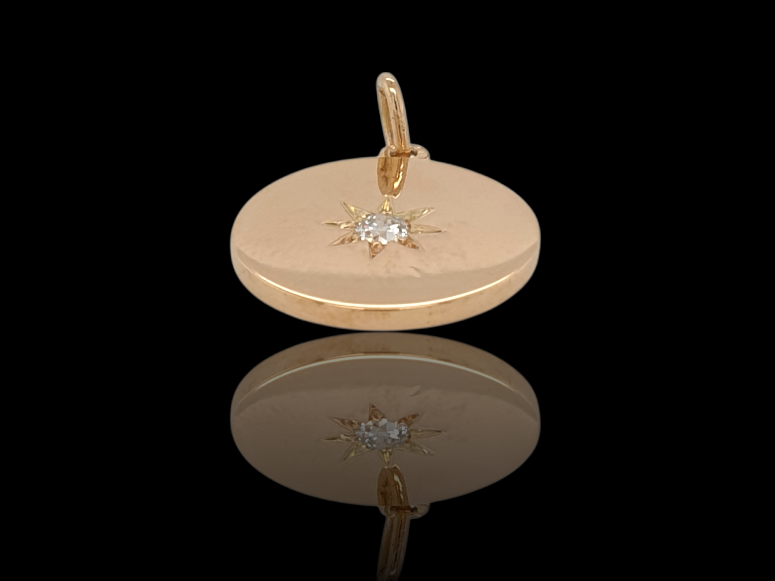 Zwaar, rond gouden plaatje met een diamant in sterzetting Vintage #29035