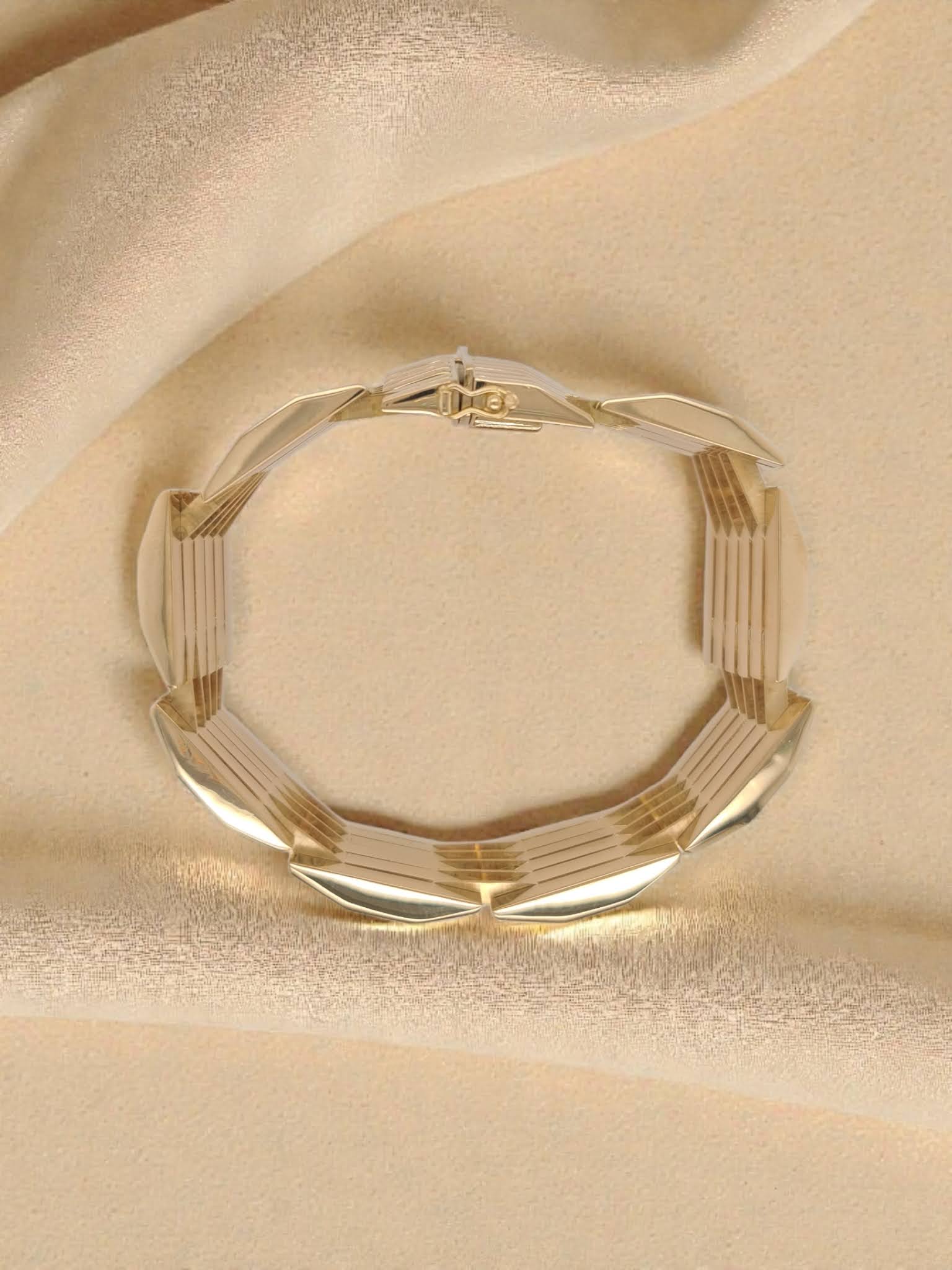 14 Karaat geelgouden brede armband met unieke schakel – Occasion #18369