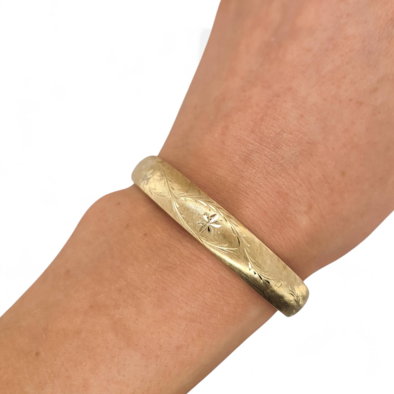 Vintage bangle-armband met bloemen gravure – Occasion #29046