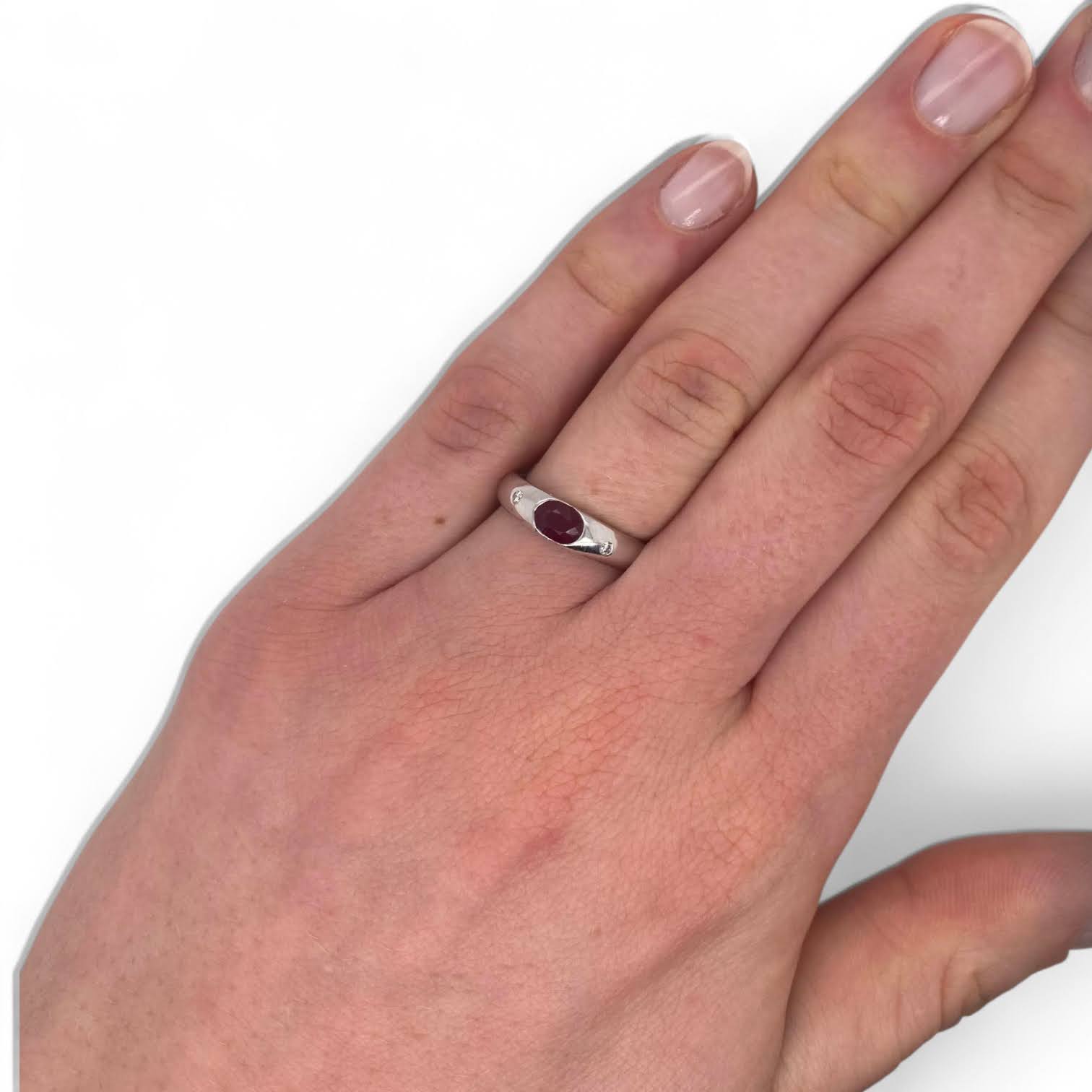 14k witgouden ring met robijn en diamant – Vintage Occasion #29231
