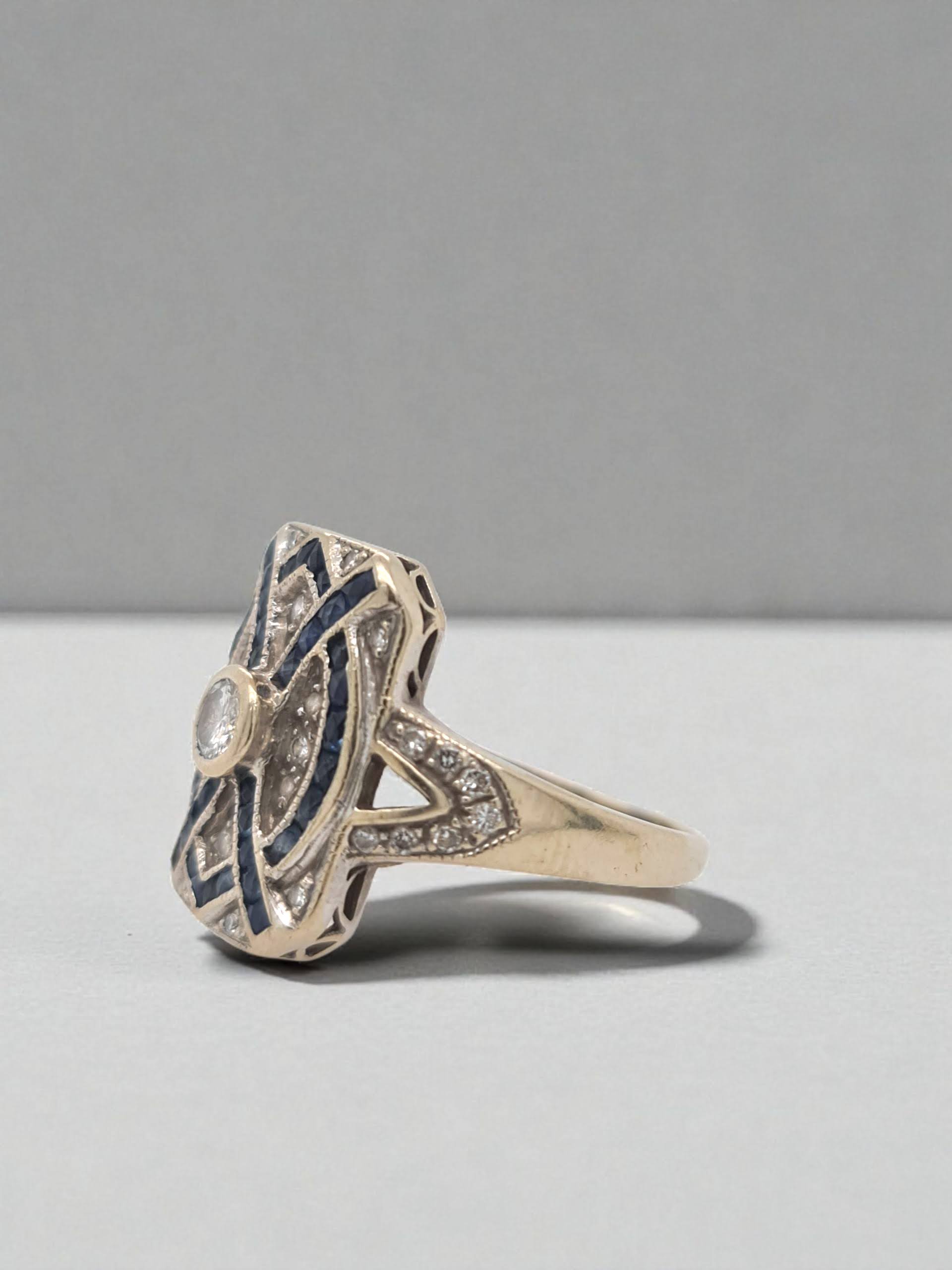 14 karaat geelgouden ring met diamant en Saffier- Vintage occasion #29002