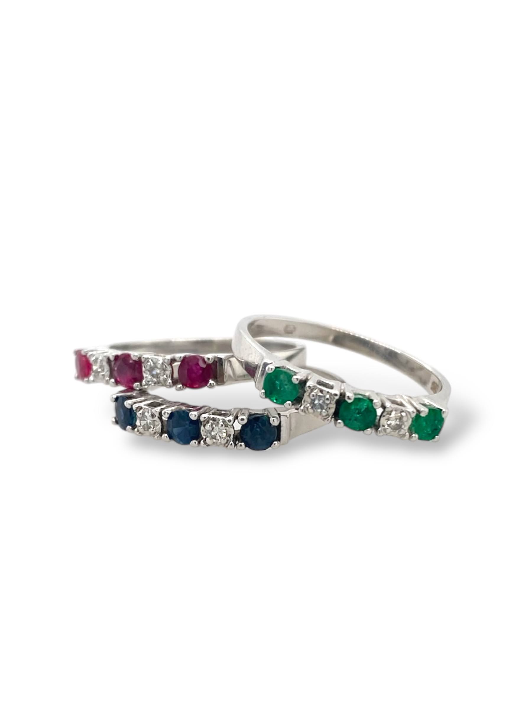 Set van drie witgouden ringen met diamant saffier, smaragd en robijn – Vintage Occasion #29225