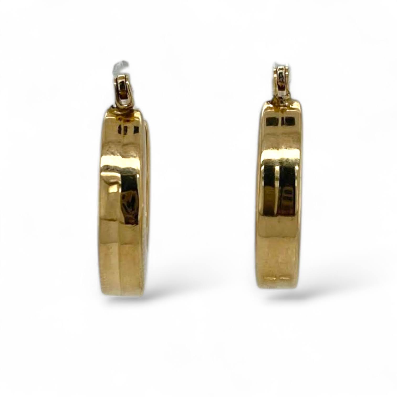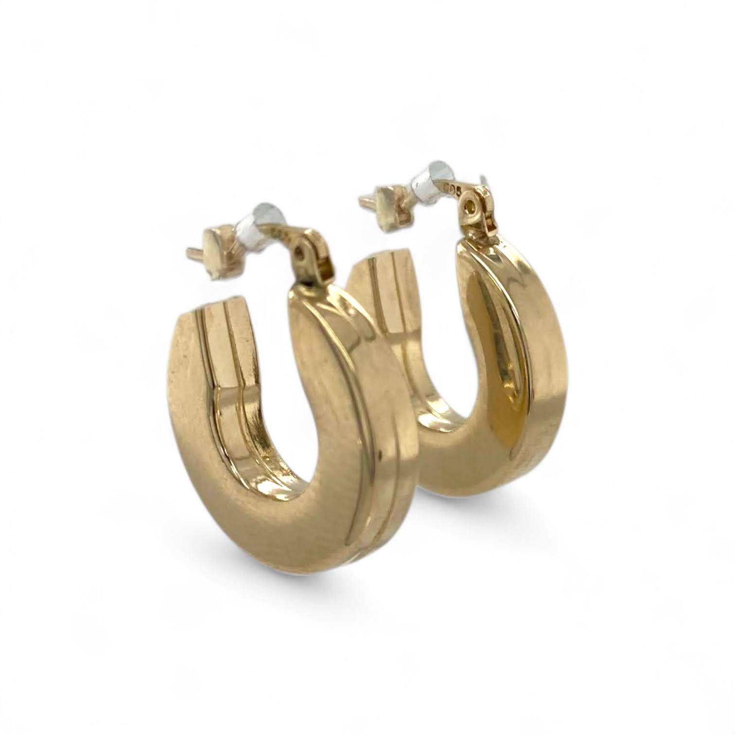 Deze brede 14 karaat geelgouden hoefijzer oorringen hebben een hoogglanzende afwerking en een moderne, elegante uitstraling. Het verfijnde ontwerp is stijlvol en tijdloos — een paar oorhangers dat moeiteloos in iedere sieradencollectie past.
