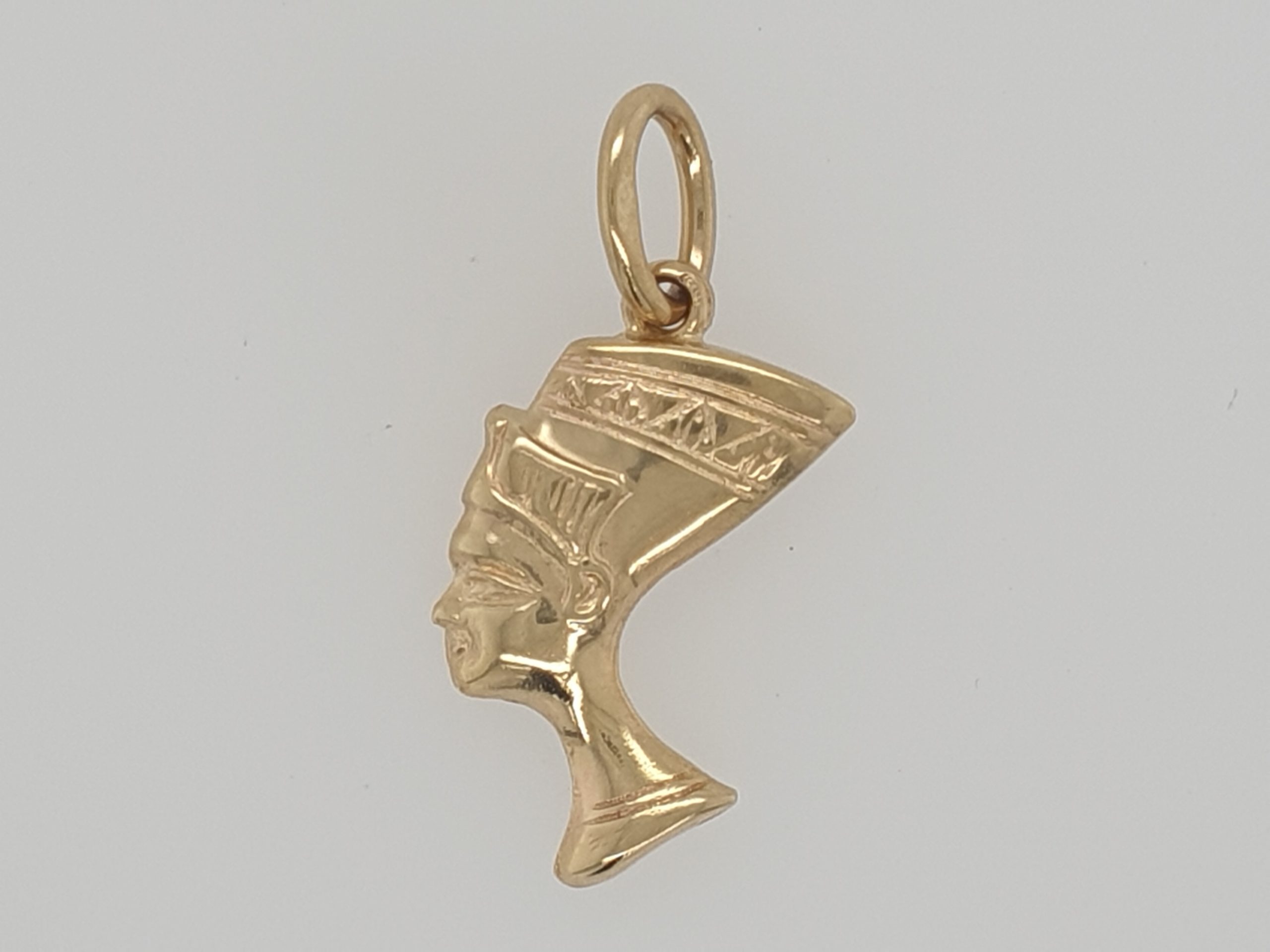14 karaat gouden tweede hands bedel, Farao. Maten 22 x 14 x 3.5mm. Een leuke bedel voor aan een armband of aan een kettinkje. Een leuk kado voor vriend, vriendin of gewoon voor jezelf.  Bestelnummer 28877.