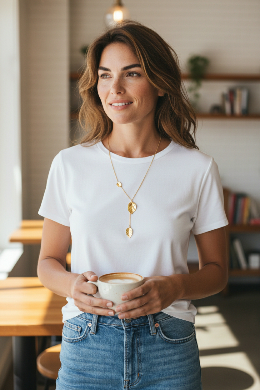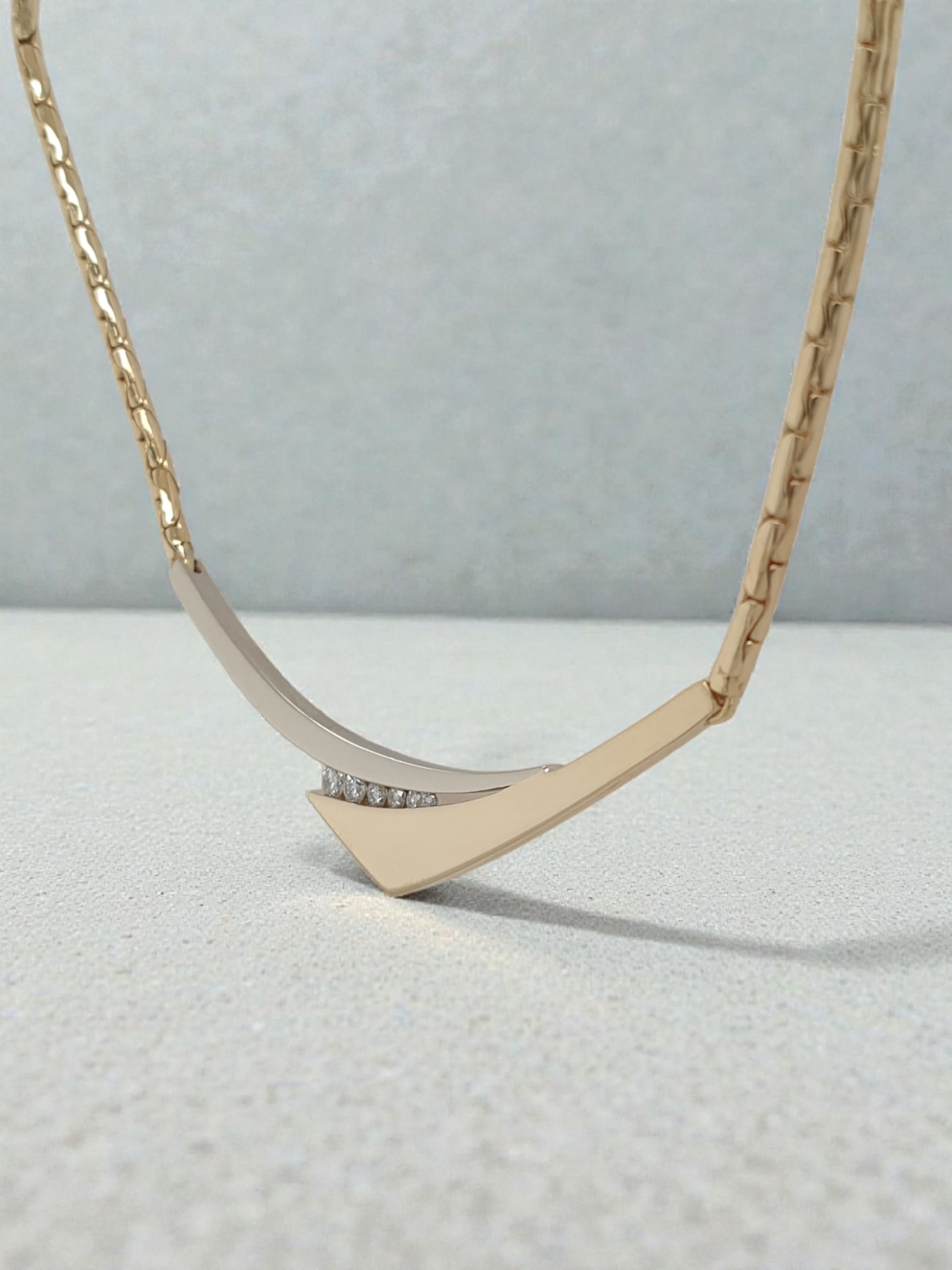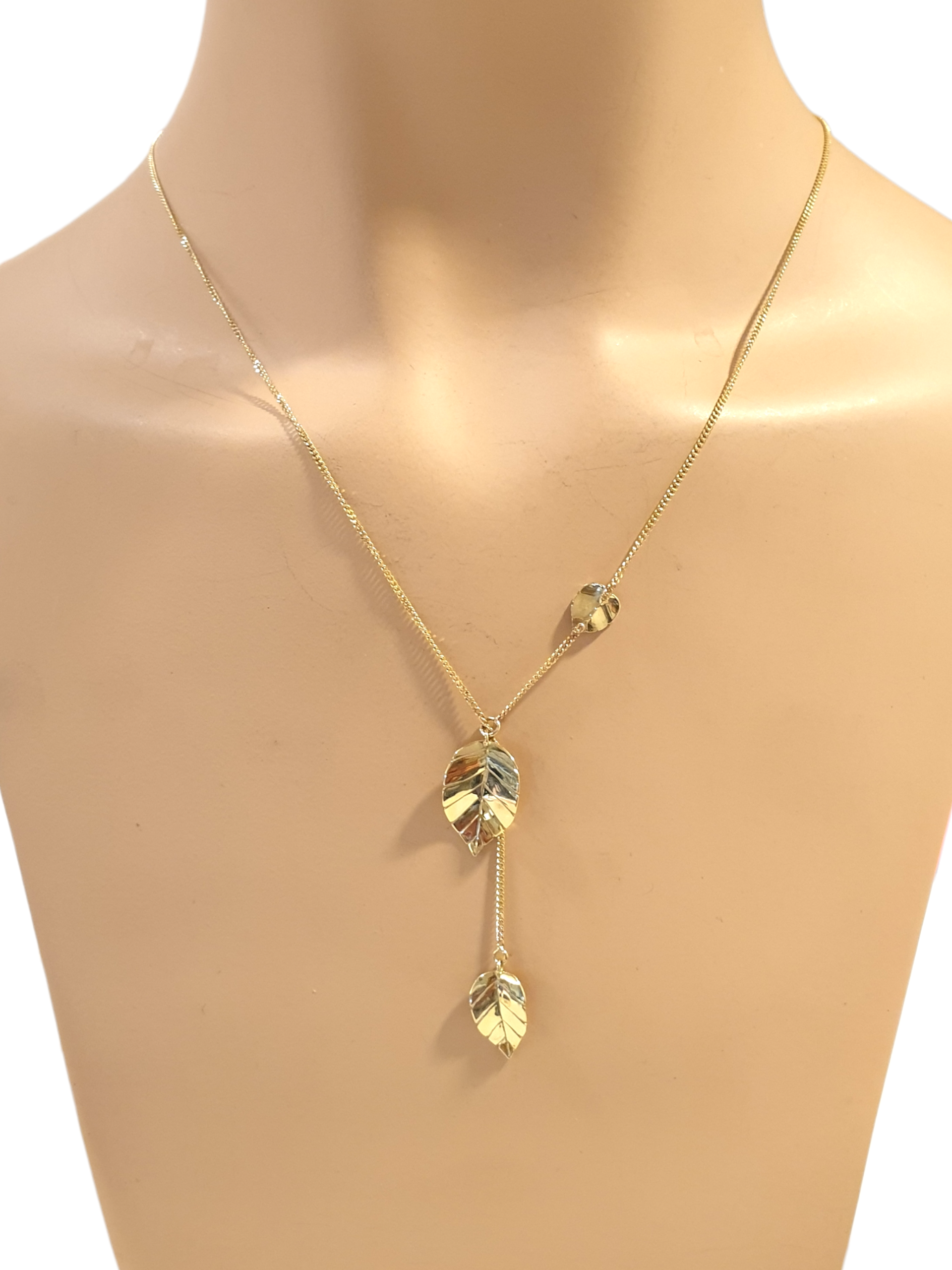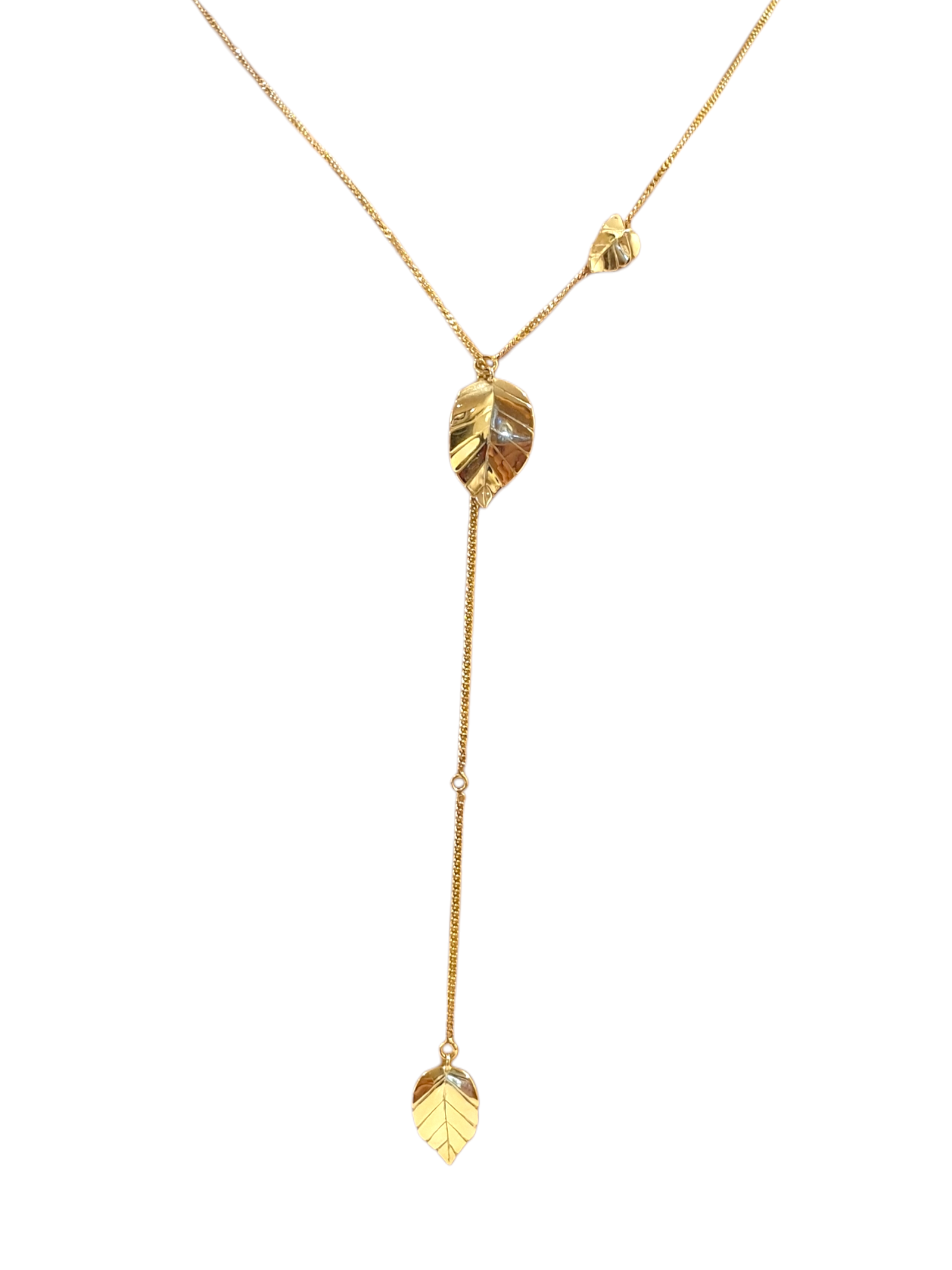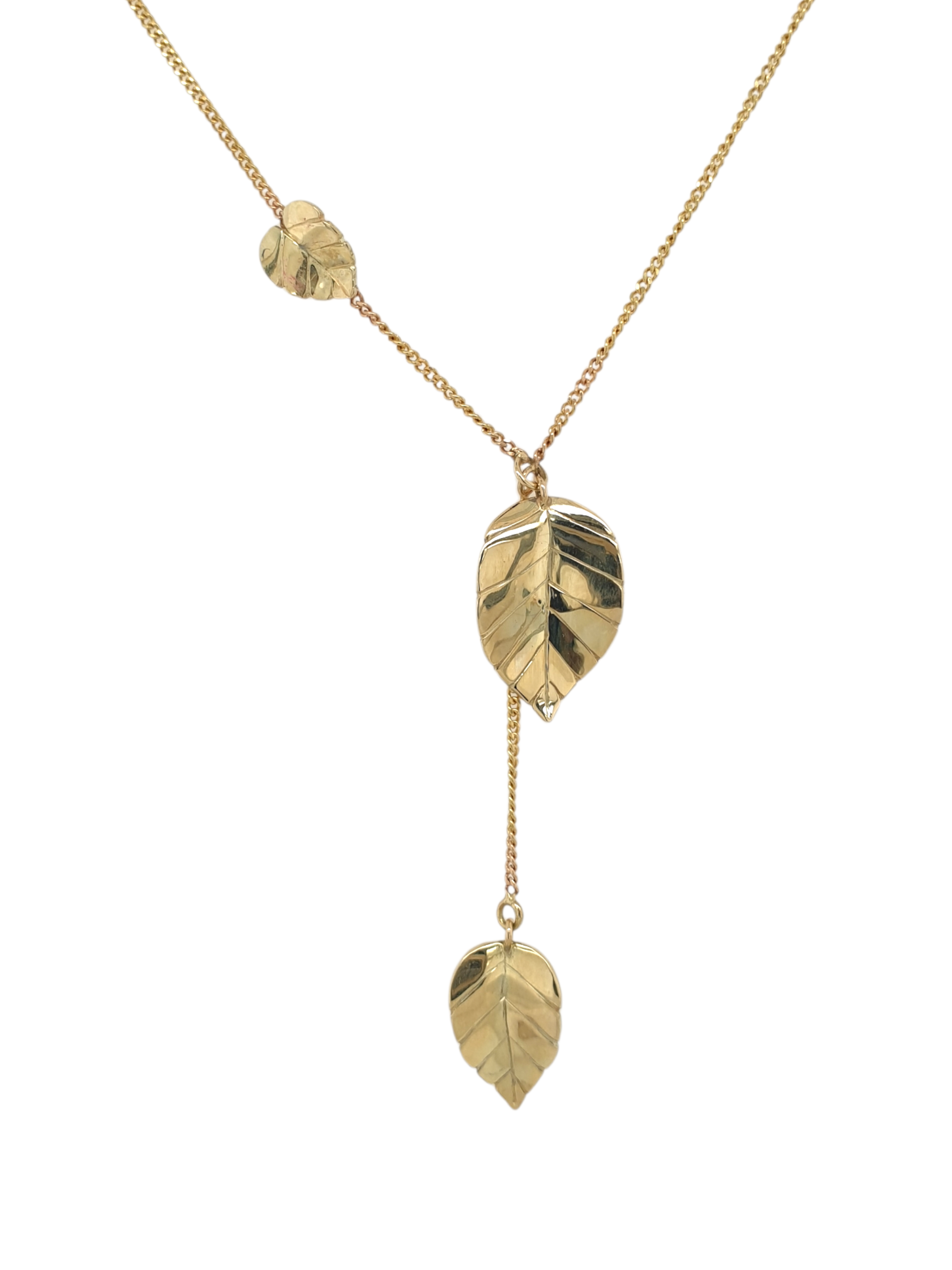 Een elegant en verfijnd collier van 14 karaat geelgoud, ontworpen en met de hand vervaardigd in ons eigen atelier. De sierlijke blaadjes bewegen speels aan het collier, zoals bladeren aan een tak. Het middelste blaadje is in hoogte verstelbaar, doordat het collier door een subtiel oogje is geregen. Een schitterend en uniek halssieraad, doordrenkt met ambacht en finesse.