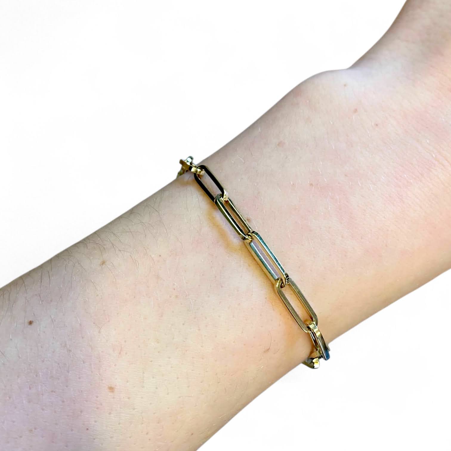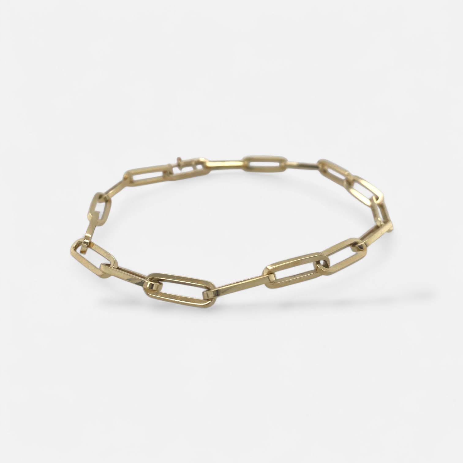 Deze mooie, massieve armband van 14 karaat geelgoud is uitgevoerd met een robuuste paperclip schakel, ook wel closed forever genoemd. Een echte klassieker die toch altijd modern blijft ogen.