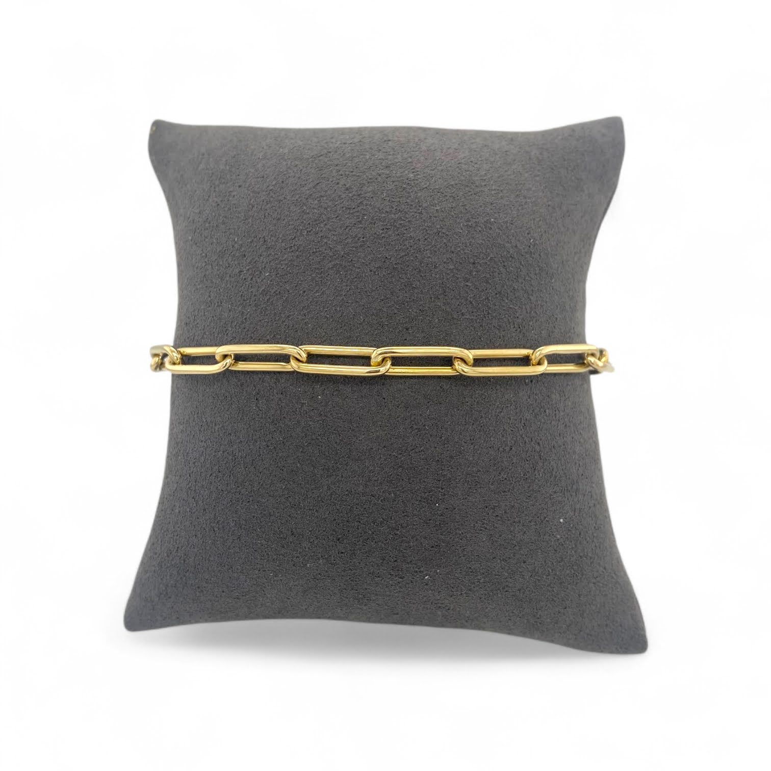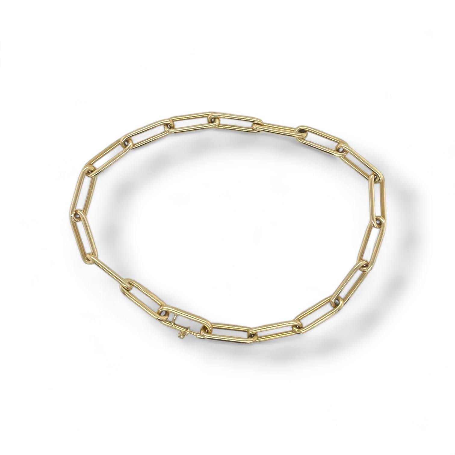 Deze mooie, massieve armband van 14 karaat geelgoud is uitgevoerd met een fijne ronde paperclip schakel, ook wel closed forever genoemd. Een echte klassieker die toch altijd modern blijft ogen.
