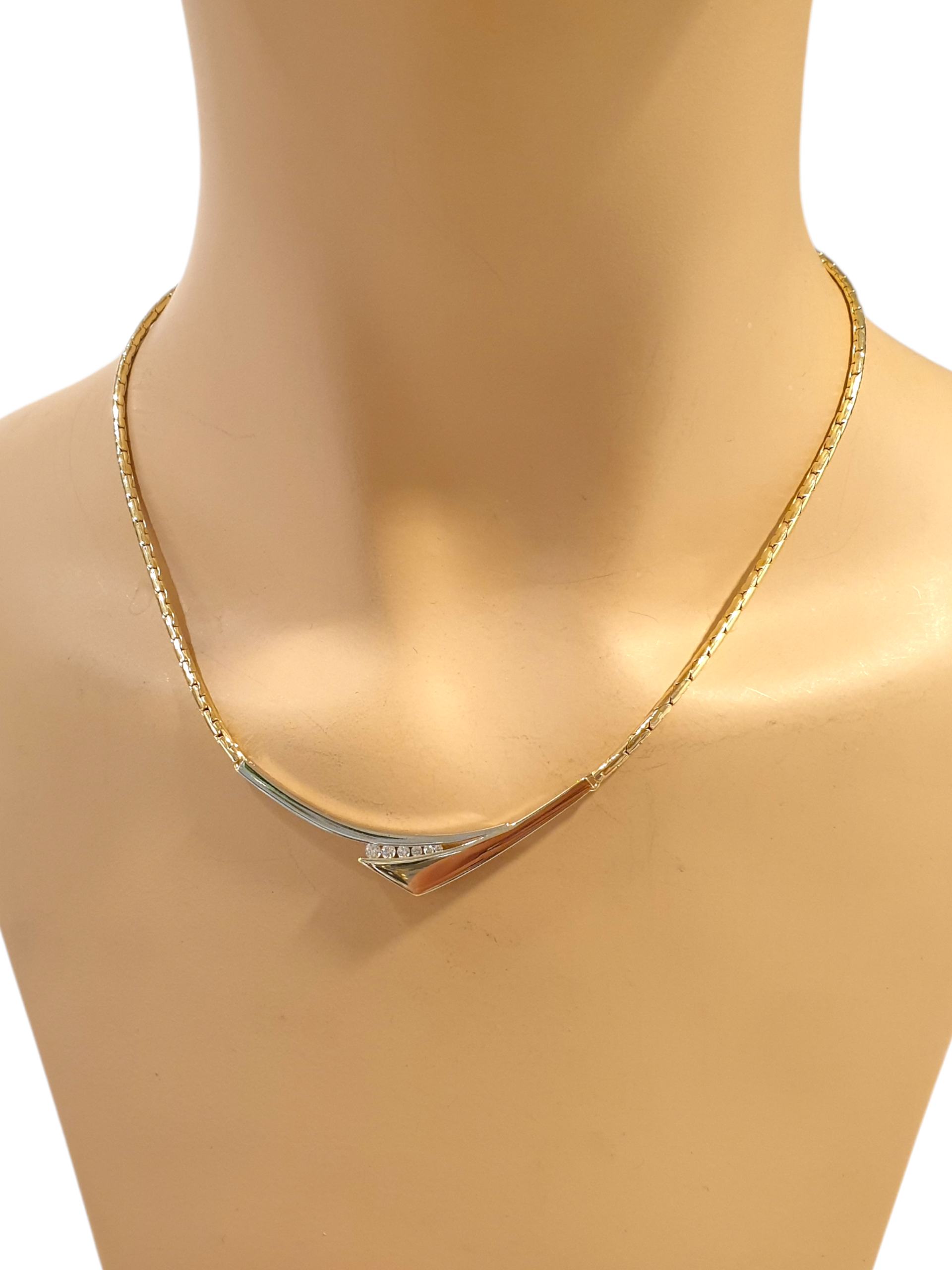 Een vrouwelijk, klassiek collier dat tijdloze klasse uitstraalt. Het sieraad is tweedehands, maar verkeert in een staat alsof het nieuw is.