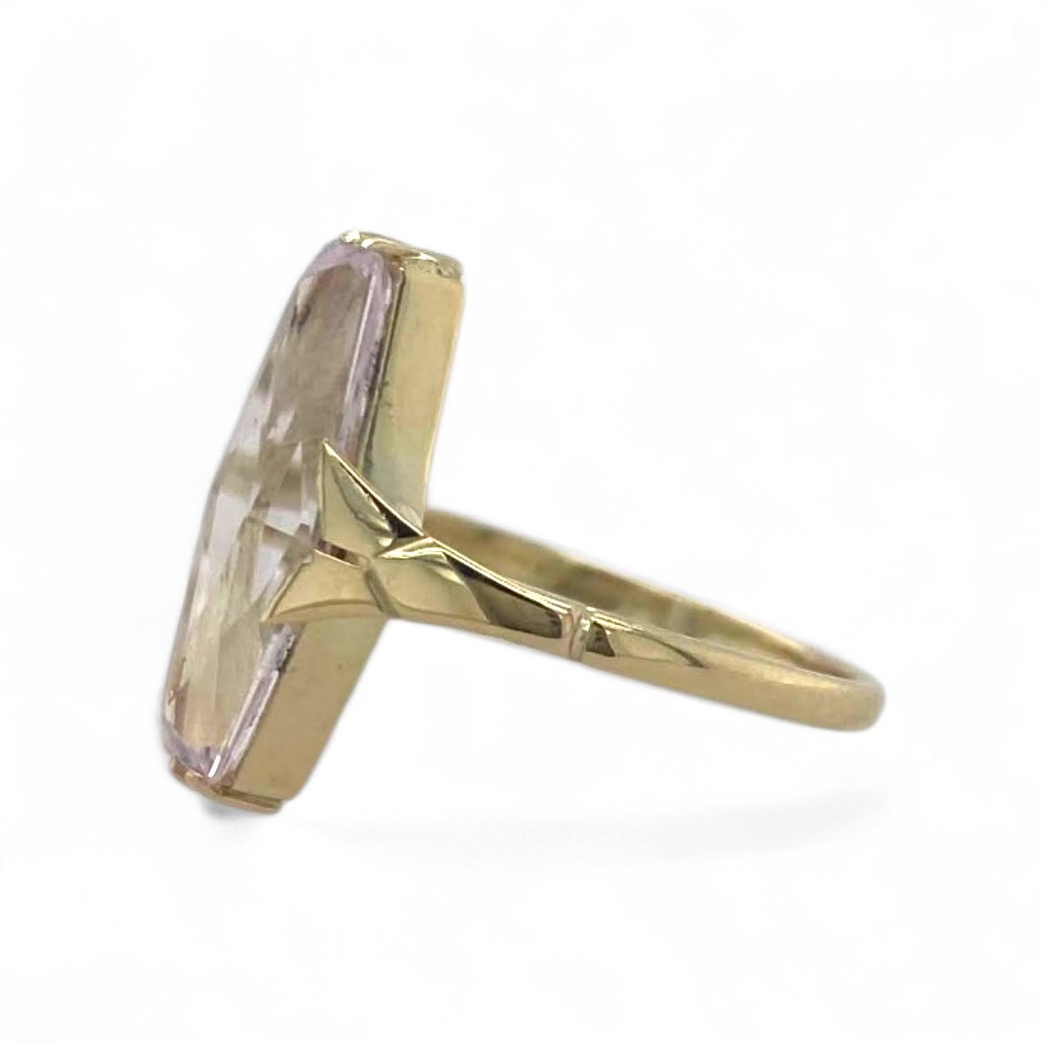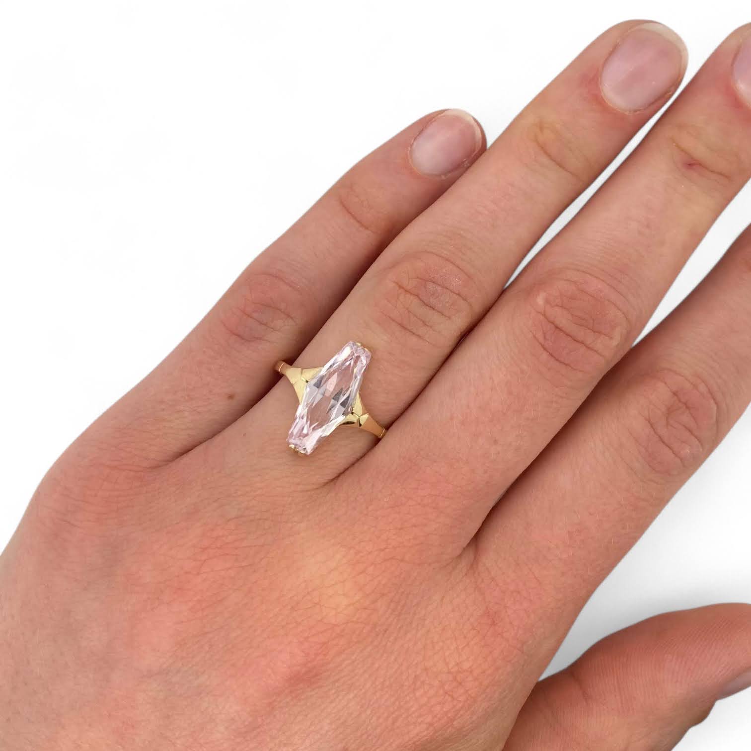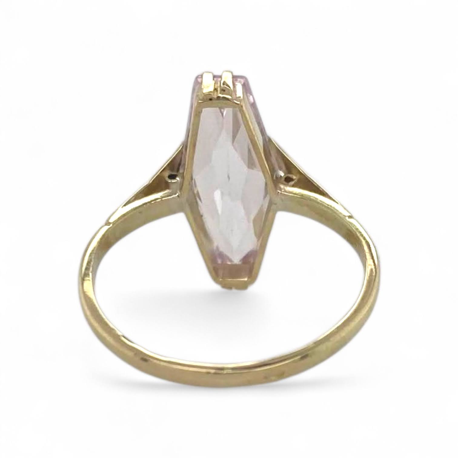 | Steen | Rozenkwarts, facet geslepen in een langwerpige achthoek 12 x 7 mm |