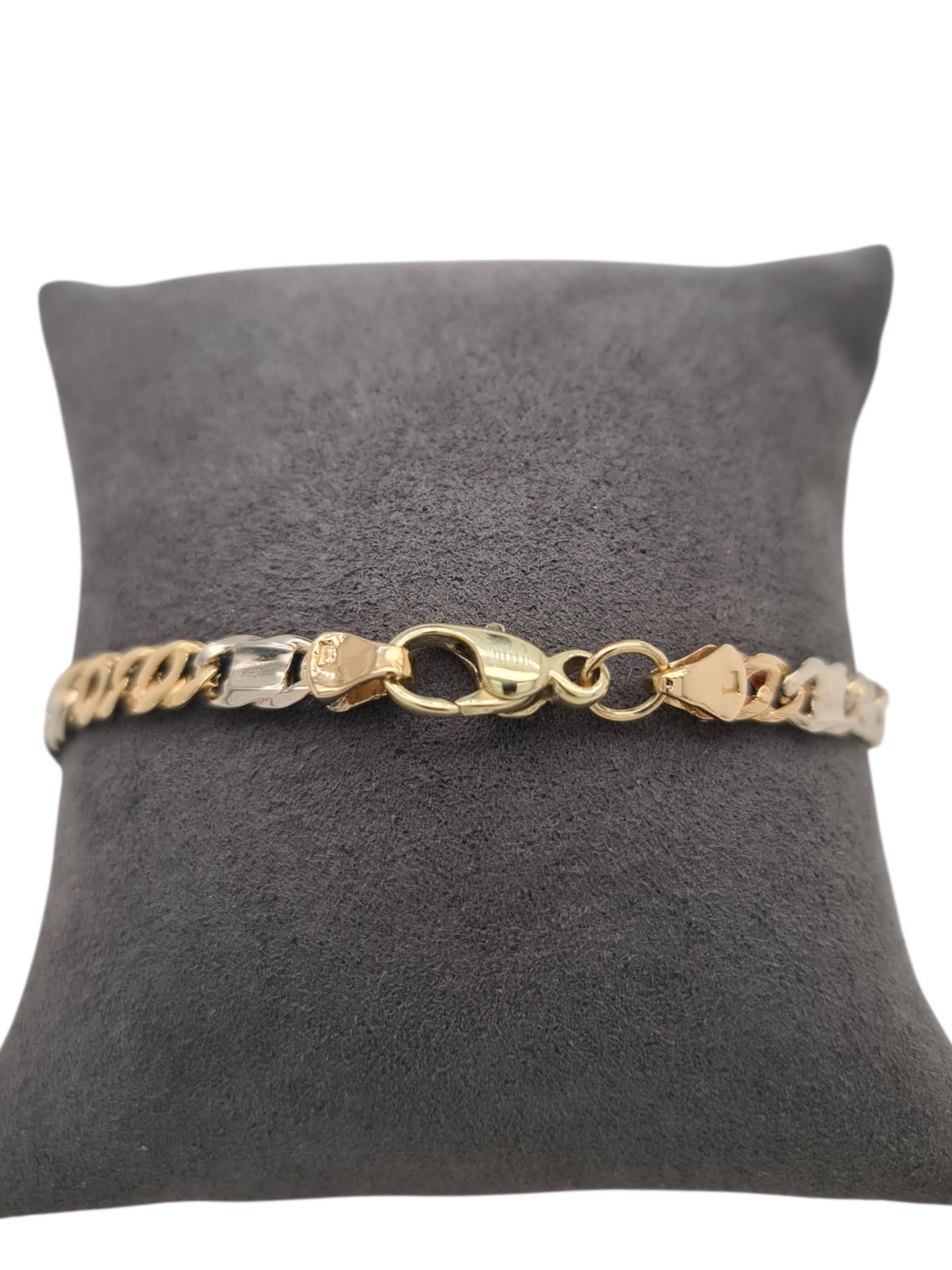 18 krt. Bicolor gourmette armband met witgouden schakels Occasion #28835