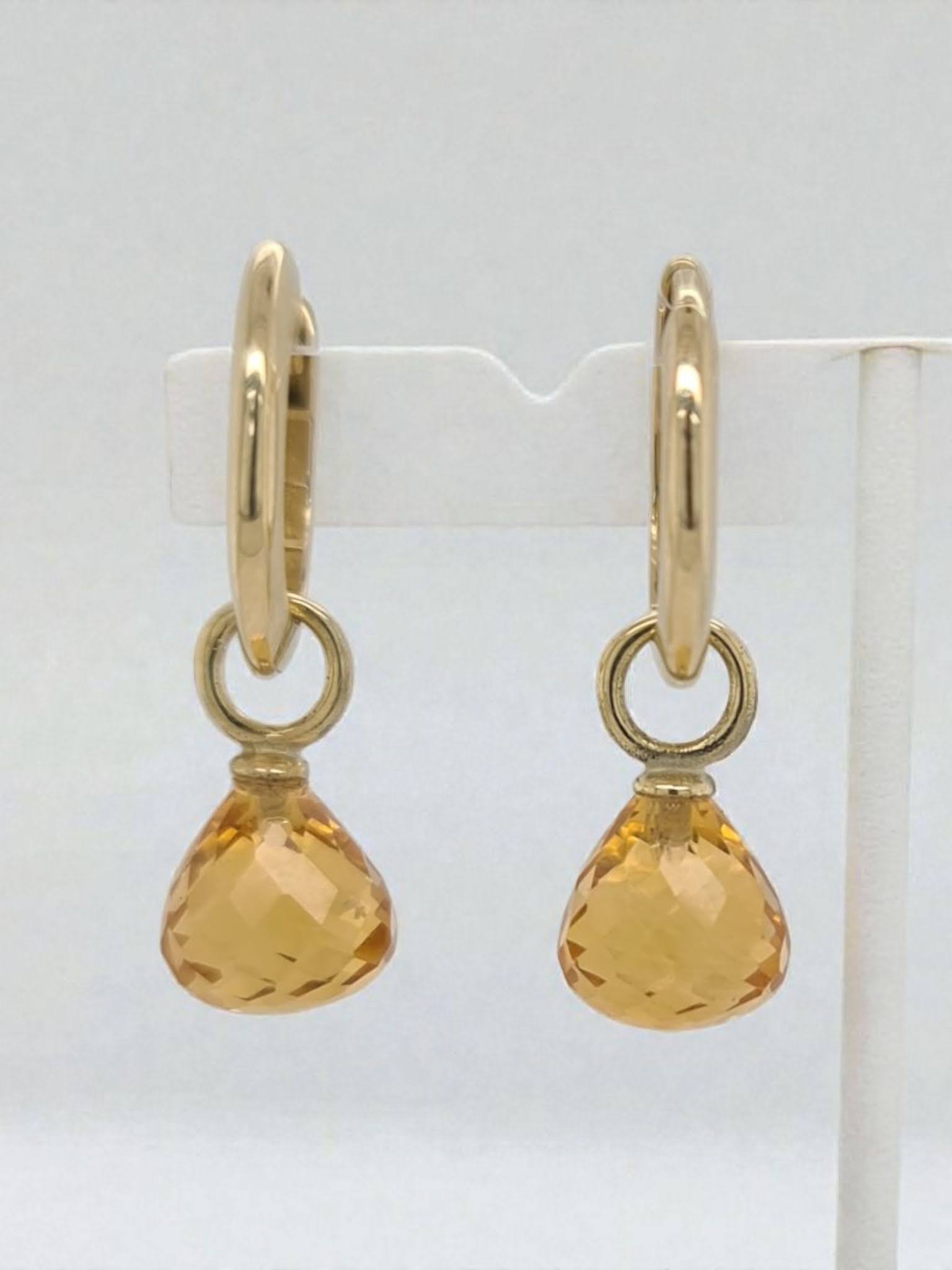 Mooie creoolhangers met peervormige, facetgeslepen citrien, afgewerkt met een 14k gouden oogje.