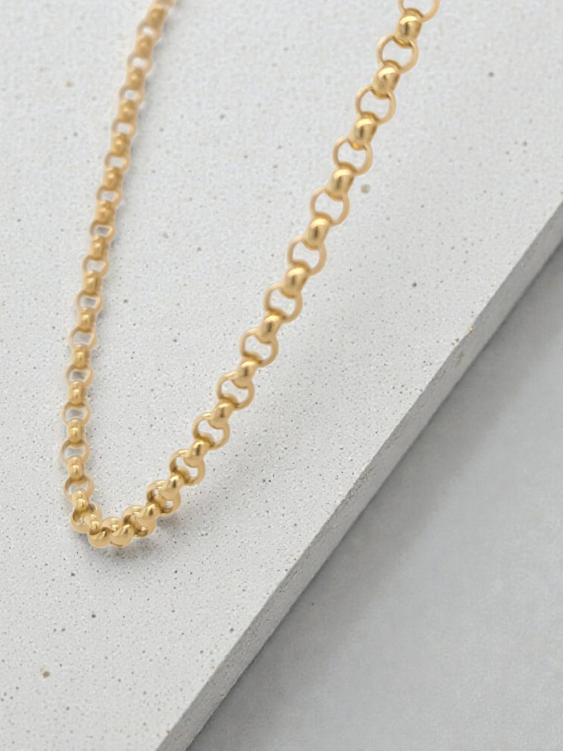 14 karaats geelgouden jasseron collier. Simpel en elegant, een tijdloos sieraad.
