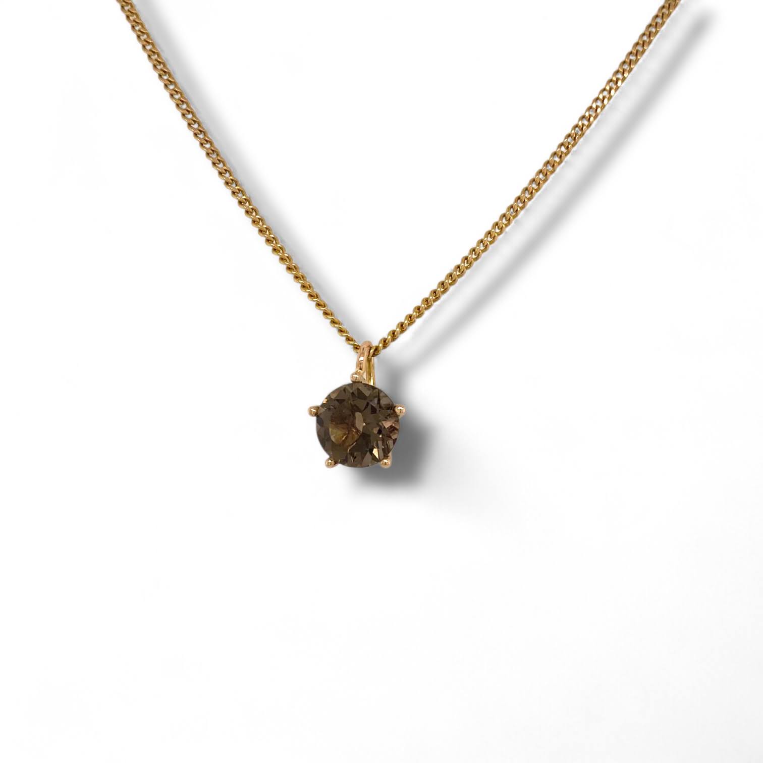Deze prachtige en unieke hanger is bezet met een fraaie rookkwarts in een penta-chatonzetting – een elegante zetting met vijf stilistische poten. Dankzij de subtiele chaton krijgt de steen nog meer licht waardoor hij extra lijkt te vonkelen.