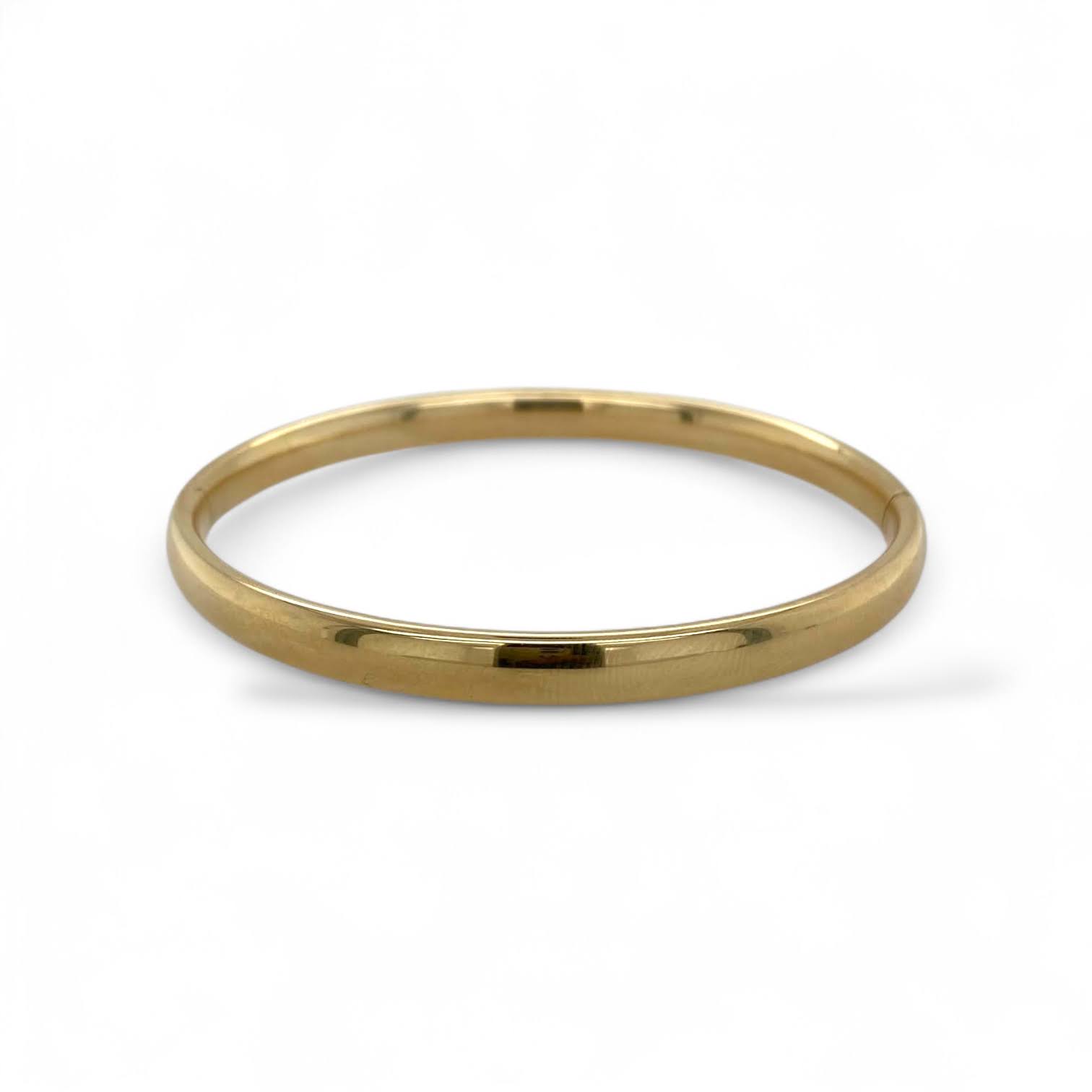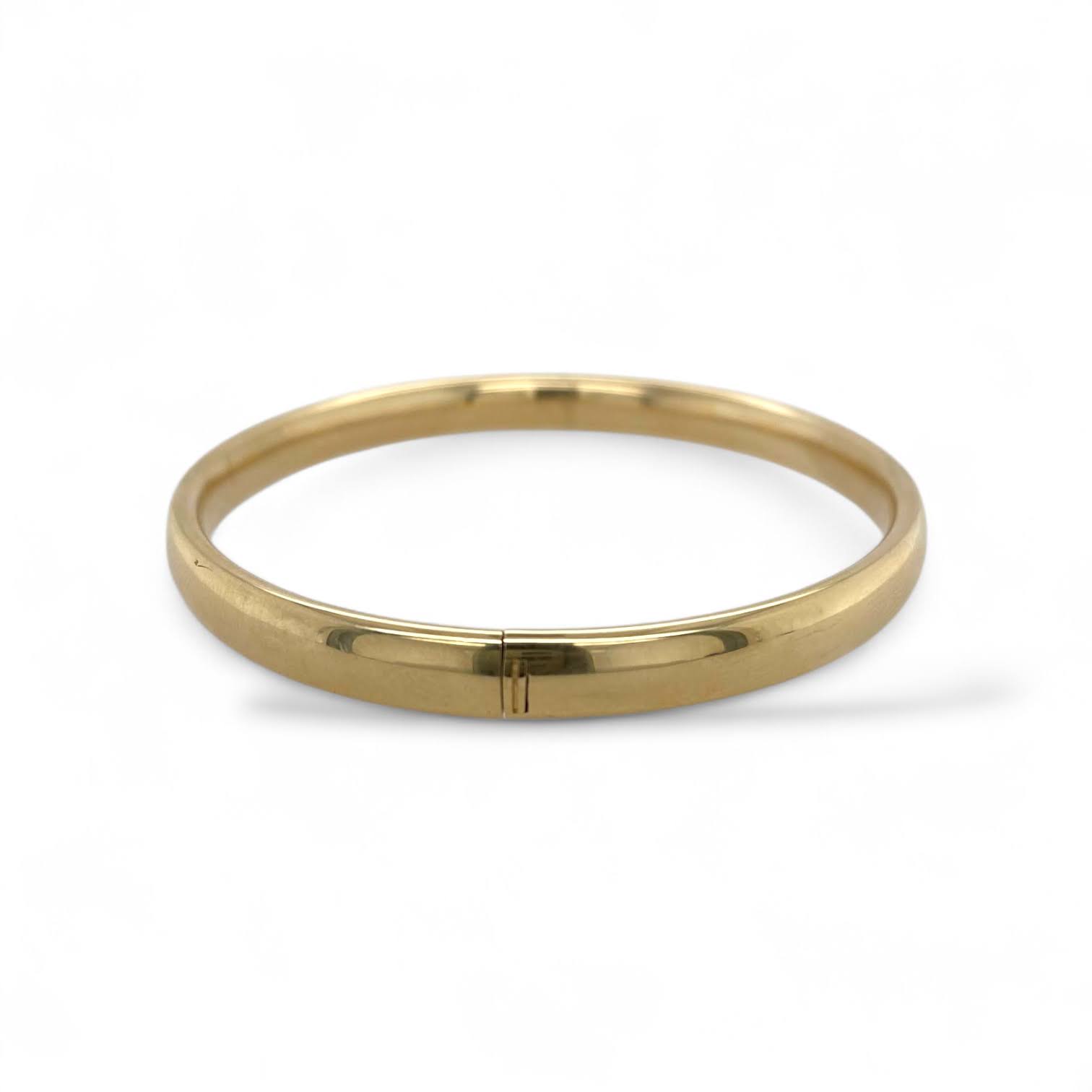 Deze bangle (slavenband) van 14 karaat geelgoud is een klassiek en tijdloos sieraad. Een elegante armband met een strakke vorm en vrijwel onzichtbare sluiting.