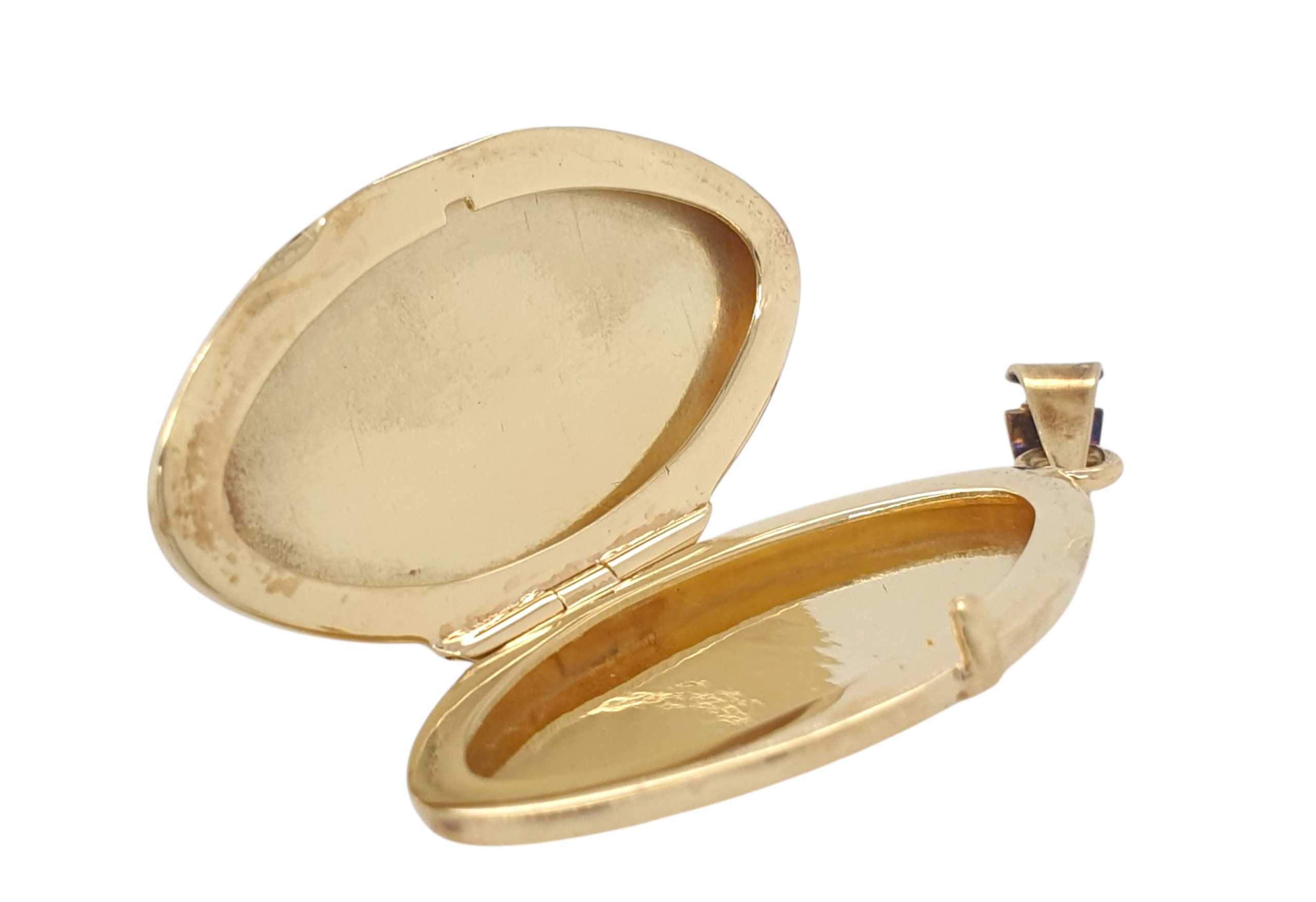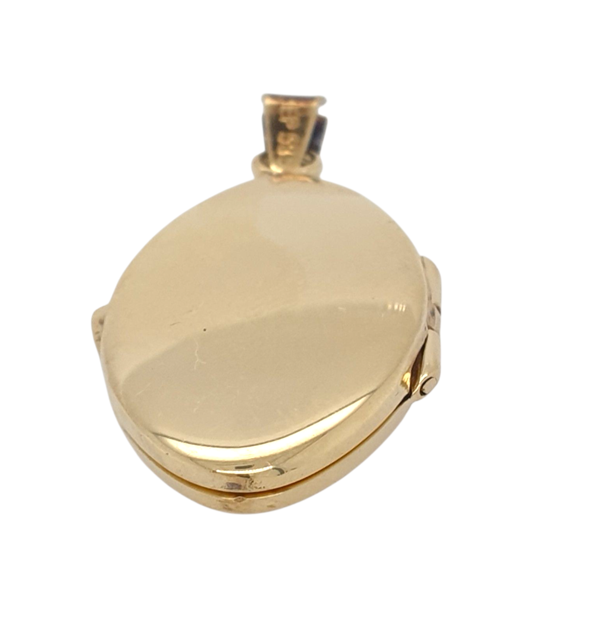Prachtig mooi langwerpig stijlvol ovaal gouden medaillon met subtiele gravure. De achterkant is glad gepolijst. Een prachtig sieraad om je herinneringen in op te sluiten. 14 karaat geelgoud. 35 x 19 mm exclusief het oog. Bestelnummer 28962.
