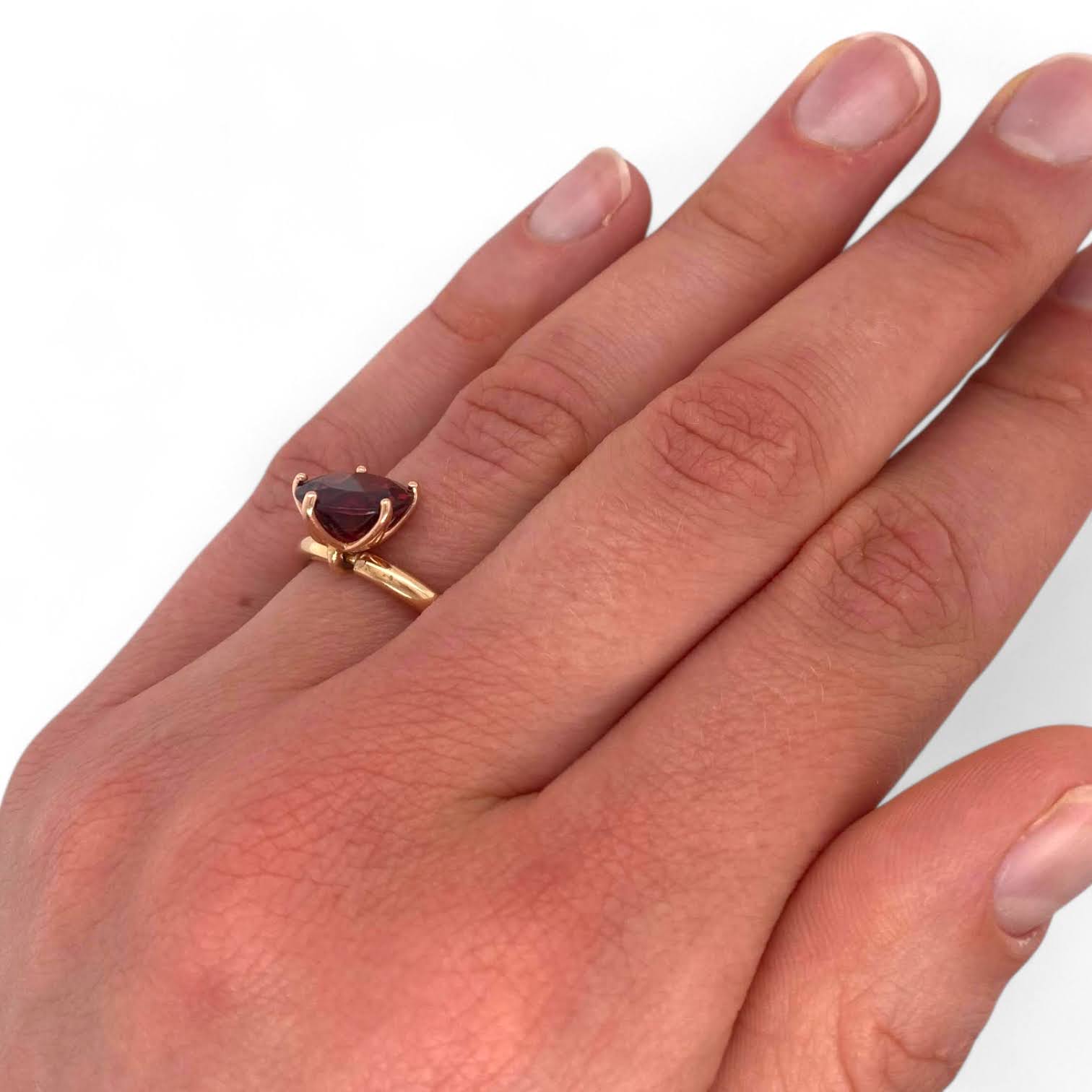 Roségouden tuimel penta ring met granaat -14k – eigen atelier #25519