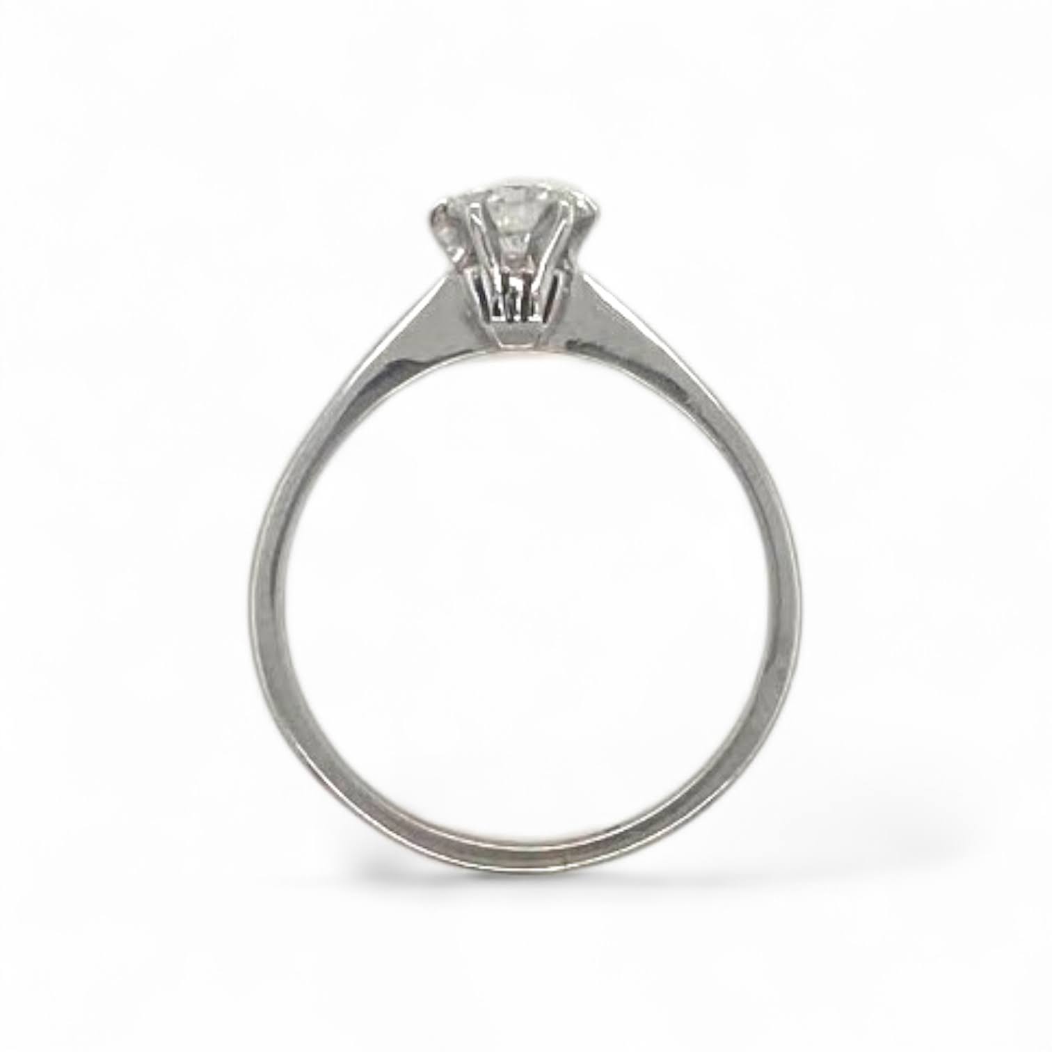 Mooie klassieke witgouden ring van 14 Karaat met een briljant geslepen diamant van 0.13 crt. W.VS. Maat 16 maar kan door ons aangepast worden. Mooie solitair. Bestelnummer 25502