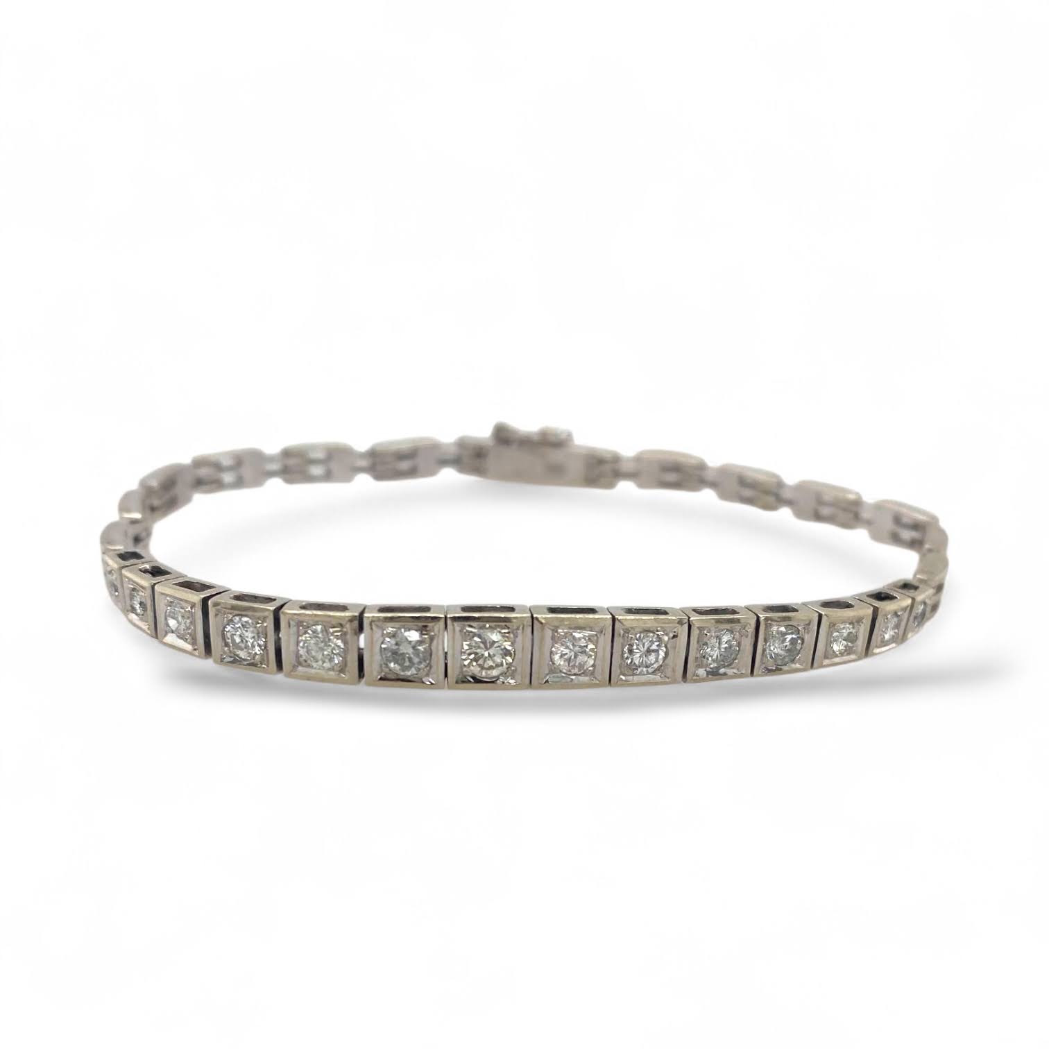 Witgouden tennis armband – Vintage art deco – 18 karaat #29348