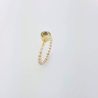 Zilveren ring met gouden zetting en zoetwaterparel. Handgemaakt. #24711