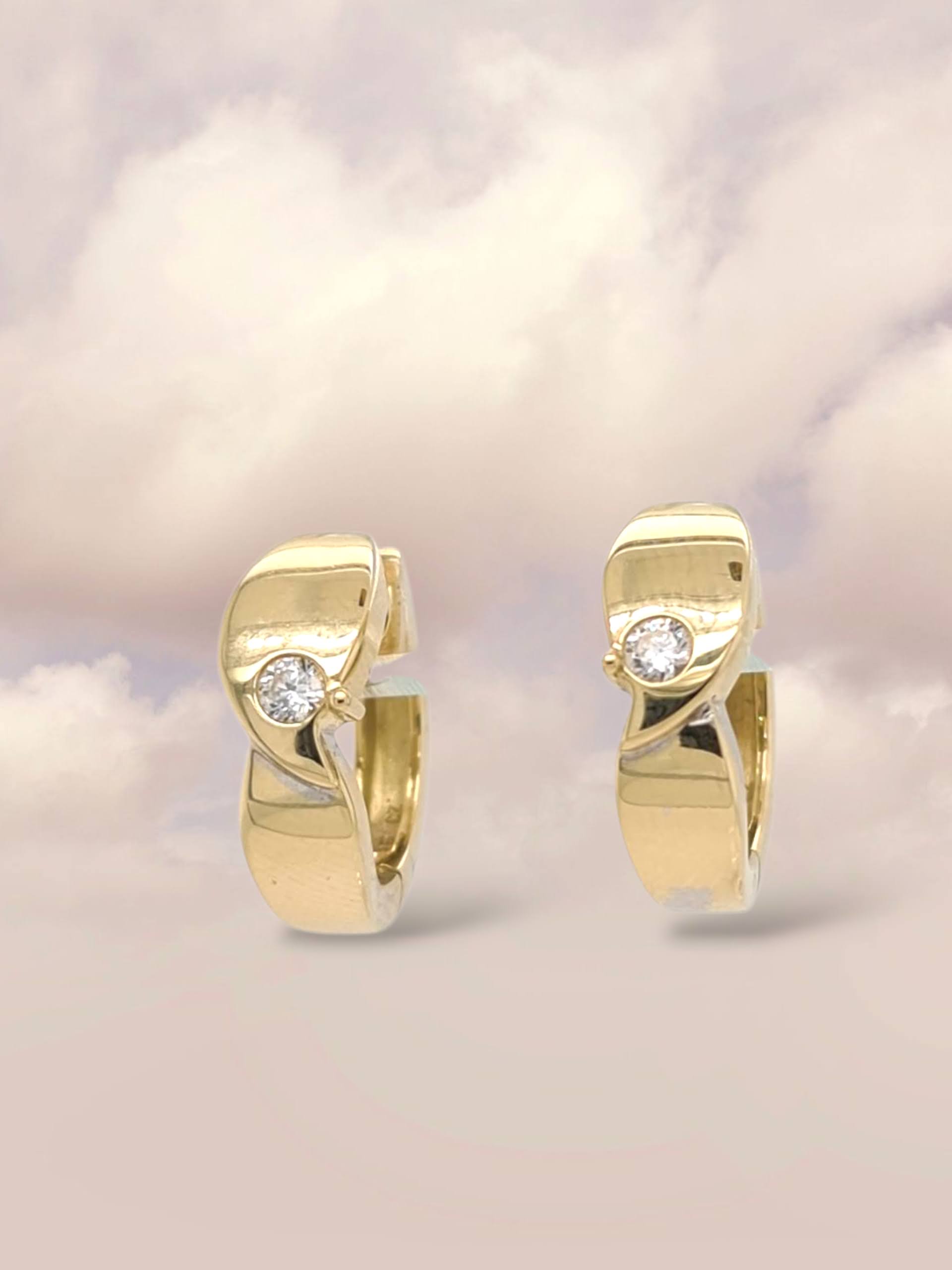 14 karaat geelgouden oorringen met cubic zirkonia tweedehands #28762